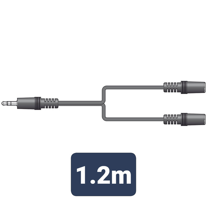 A simple, reliable 3.5mm stereo splitter cable: one 3.5mm TRS plug to two 3.5mm TRS sockets. Ideal for sharing audio from a phone, tablet, laptop, keyboard, or interface to two sets of headphones or two inputs. The 1.2 m length gives a bit of slack for comfortable use.