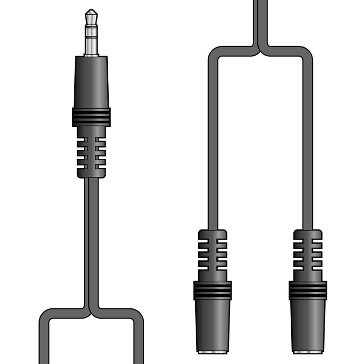 1× 3.5mm stereo (TRS) plug → 2× 3.5mm stereo (TRS) sockets