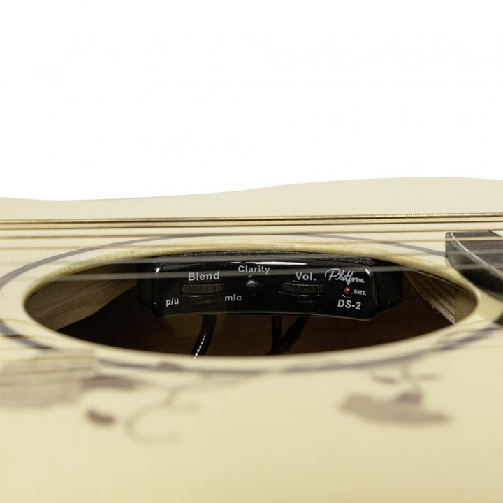 Electronics: DS-2 preamp – blendable gooseneck condenser mic + undersaddle piezo