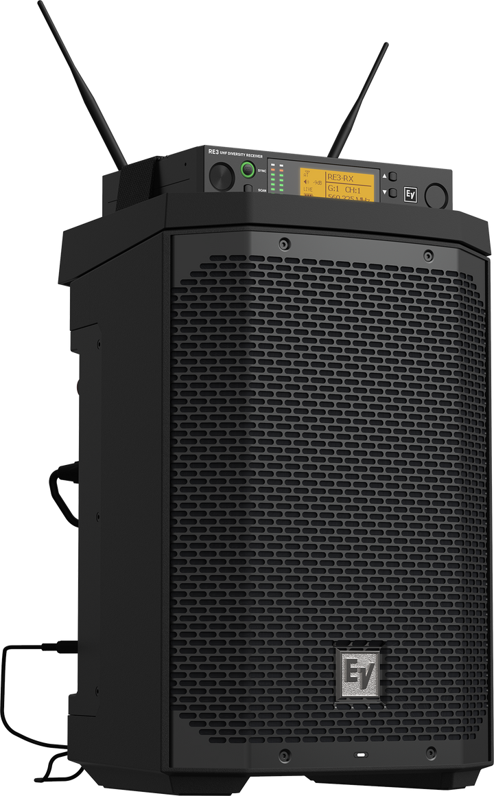 Battery-powered 8" two-way PA with up to 12+ hours typical run time¹