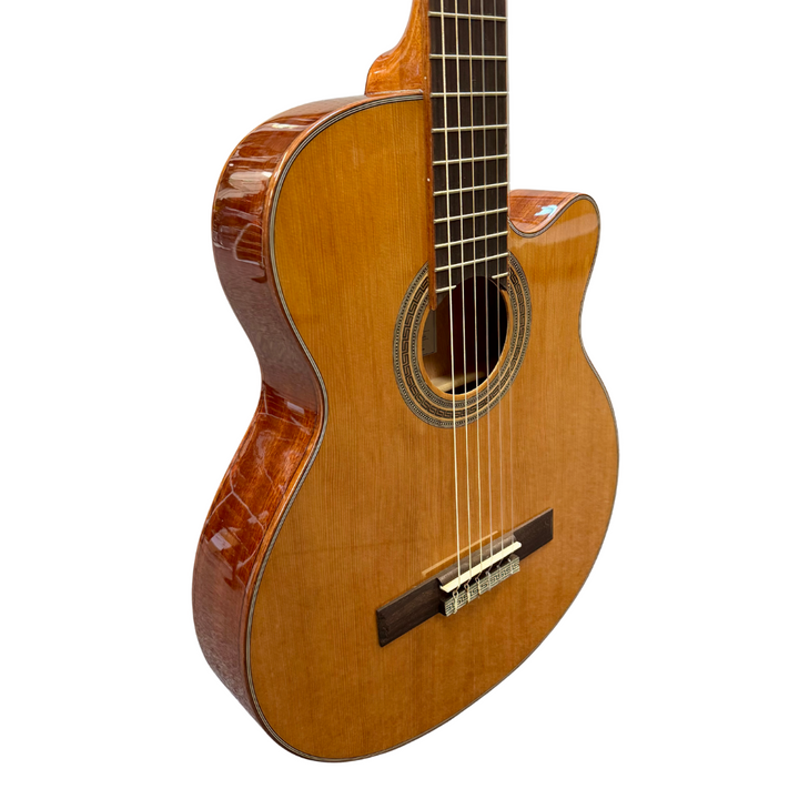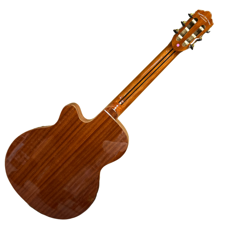 This full-size classical guitar with thinline cutaway design delivers the warm, resonant tone of nylon strings in a lightweight, comfortable body. Built with a cedar top and sapele back and sides, it offers a balanced, responsive sound that works well for classical, flamenco, fingerstyle, or general acoustic playing.