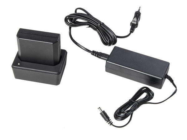 Batteries: 2 × Li-ion packs included, 5,200 mAh each; ~5 h charge in unit (≈2 h with optional quick charger)