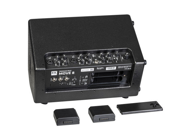 The HK Audio PREMIUM PR:O MOVE 8 is a compact, battery-powered PA designed for musicians, presenters, fitness instructors and mobile events where mains power isn’t practical. It delivers clear, full-range sound with an integrated 4-channel mixer, Bluetooth® 5.0 audio streaming, app control, and a genuine hot-swap battery system so you can change batteries without interrupting the show. Two rechargeable batteries are included.