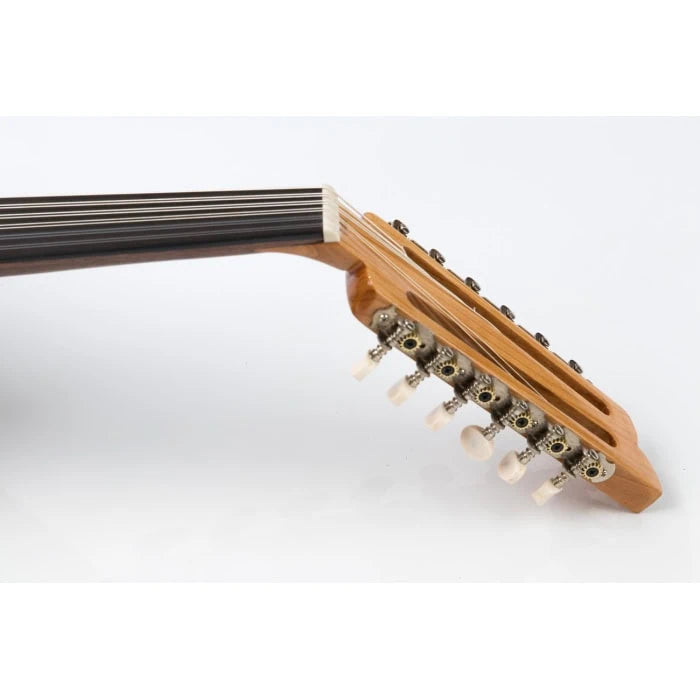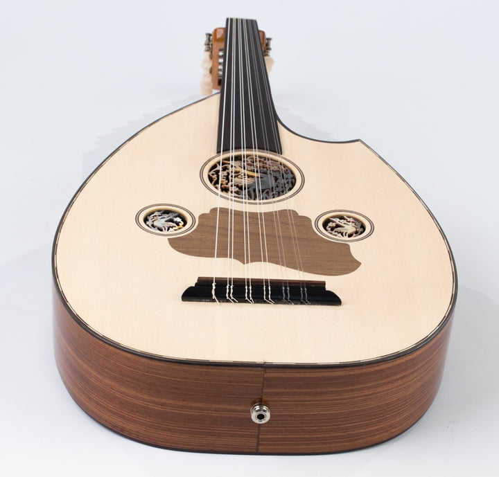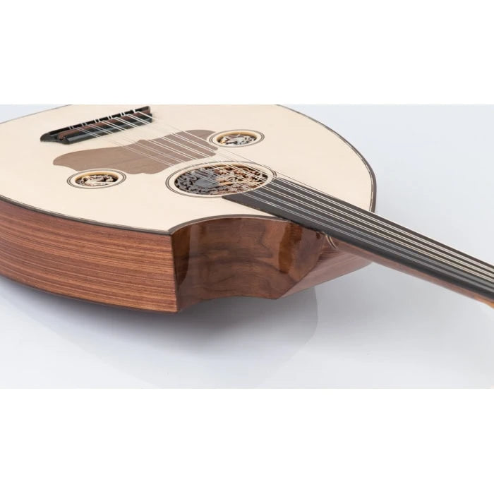 Meet the do-it-all electric oud: a semi-acoustic, cutaway design that’s just as happy in the living room as it is on stage. The flatback body and Fishman Presys 301 preamp give you plug-and-play control with far fewer feedback headaches, while the cutaway lets you reach high notes comfortably for modern maqam lines and solos. Built from solid walnut, fitted with mechanical (guitar-style) pegs for easy tuning, and strung with Kürschner Premium strings, it’s a contemporary take on the classic Turkish oud voice.
