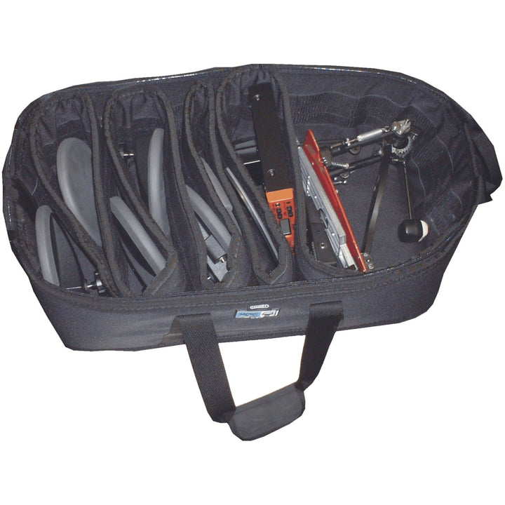 A dedicated, tour-tough case for electronic kit hardware. The Protection Racket 1110-01 Electro1 gives you a roomy 28" x 16" x 16" interior and an adjustable “snaking” Velcro divider so you can build up to 6 compartments for stands, pedals, cables and pads. The hard-wearing black polyester shell shrugs off scuffs, the heavy-duty zips and webbing handles are built for stage life, and the rectangular footprint stacks neatly in the car or van. (Note: you’ll need a separate rack case if your kit uses a full rack.)