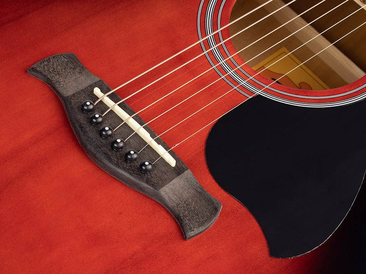 Acacia fingerboard & bridge, ABS ivory binding, red sunburst gloss finish