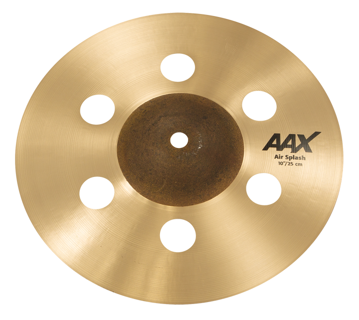 A punchy, cutting splash that really opens up and breathes! With six 1”-diameter holes in the 10” model, the SABIAN AAX Air Splash incorporates a raw bell with AAX hammering and lathing. This design results in a Splash cymbal with biting tone and plenty of substance and depth. Also available as an 8” model.
