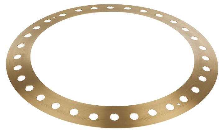 Designed by Jojo Mayer, this dual-ring effects device offers incredible versatility and a massive palette of sound. Made from premium B20 Bronze hi-hats, the top flotation ring is punched with 32 holes for lightness and lift, while the heavier bottom ring is designed with X-Celerator Air-Wave lip to minimize contact with the snare head. So you can use it without changing the sound of your snare, allowing you to dial in as much or as little effect as you want. The sound possibilities are endless!