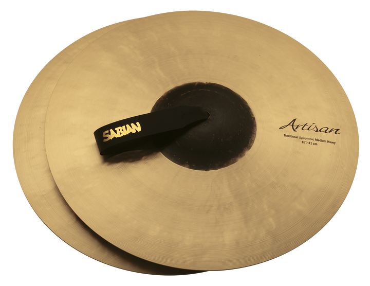 SABIAN 16” Artisan Medium Heavy pairs respond quickly with rich, warm tone and clear articulation, making them ideal for playing rhythmic passages at very soft to moderate dynamics. Their size makes them ideal for marches and attached cymbal and bass drum. SABIAN 16” Artisan Medium Heavy pairs are a very popular choice for playing orchestral excerpts at low volume levels. Inspired by leading percussionists looking to replace aging orchestral models, Artisan pairs improved upon original, century-old cymbals to become the benchmark by which all hand cymbals are measured. Available in Medium Light and Medium Heavy weights in sizes 16" through 20", SABIAN Artisan hand cymbals combine traditional high-density hand hammering with modern jumbo-peen dimpling on the underside to produce a design that is ideal for performing any repertoire. SABIAN Artisan Medium Light Artisan pairings respond quicker with a splashier quality and shorter sustain than Artisan Medium Heavy pairings.