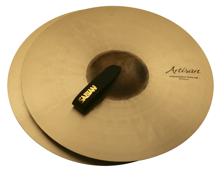 SABIAN 17” Artisan Medium Light pairs respond quickly with rich, warm tone and are ideal for playing with soft to loud dynamics. They have a splashier quality and shorter sustain than Artisan Medium Heavy pairs. Their size makes them ideal for marches and attached cymbal and bass drum. SABIAN 17” Artisan Medium Light pairs are a very popular choice for playing orchestral excerpts and auditions. Inspired by leading percussionists looking to replace aging orchestral models, Artisan pairs improved upon original, century-old cymbals to become the benchmark by which all hand cymbals are measured. Available in Medium Light and Medium Heavy weights in sizes 16" through 20", SABIAN Artisan hand cymbals combine traditional high-density hand hammering with modern jumbo-peen dimpling on the underside to produce a design that is ideal for performing any repertoire.