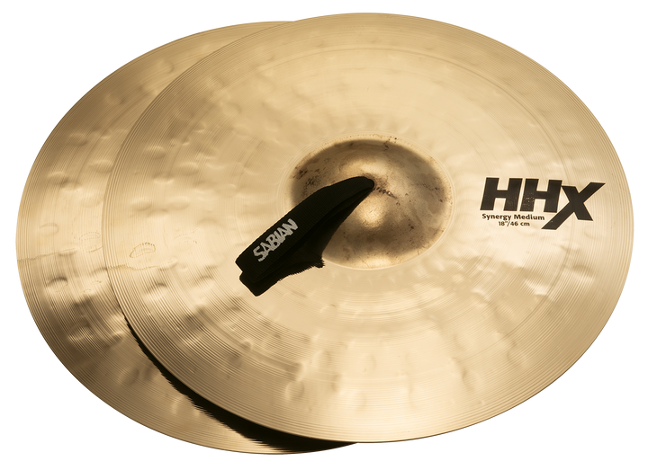 SABIAN 18” HHX Synergy Medium pairs feature large peen hammering and SABIAN "Touch Response" design, which greatly enhances projection and gives the HHX Synergy Series its rich sound. A professional level pairing, SABIAN 18” HHX Synergy Medium pairs are easy to play, making them ideal for players at all levels to perform any music from marching band to orchestral to concert band repertoire. 18” HHX Synergy Medium pairs speak quickly with a warm tone. They are ideal for soft to loud playing, and their rounded articulation makes them a great choice for marches and attached cymbal and bass drum, and they are popular for orchestral excerpts and auditions. Their projection and unique ability to both blend and cut through ensembles makes them exceptionally versatile. As a result, HHX Synergy pairs are popular with all genres of band and orchestral music and used in professional orchestras, collegiate marching bands, drum corps, WGI ensembles and high school concert bands, orchestras and marching bands.