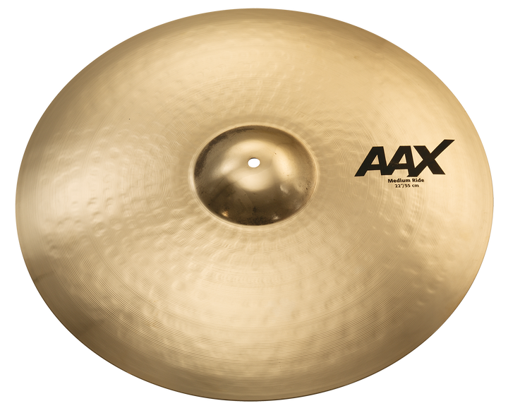 The 22" AAX Medium Ride from SABIAN introduces a whole new palette of sound to the AAX line. A smaller, raw bell equals increased crash-ability. A whole new style of hammering − much more visible on the surface of the cymbal due to the larger, rounder peen − makes for a weight that trends thinner, with added darkness and complexity. At the same time, more highs are introduced into the sound, resulting in a wider band of frequency. For drummers, that means brighter highs and more complex lows. SABIAN has always pushed the boundaries of innovation, using the latest manufacturing technology to answer new trends in music and sound. AAX Medium Rides are no exception, answering the call for crash-able, complex Rides with added versatility.