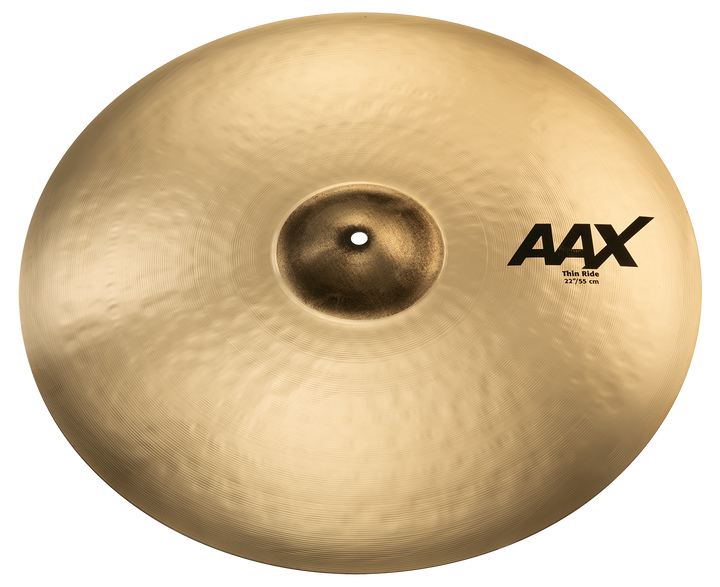The 22" AAX Thin Ride from SABIAN introduces a whole new palette of sound to the AAX line. A smaller, raw bell equals increased crash-ability. A whole new style of hammering − much more visible on the surface of the cymbal due to the larger, rounder peen − makes for a thinner, more complex and slightly darker Ride cymbal. At the same time, more highs are introduced into the sound, resulting in a wider band of frequency. For drummers, that means brighter highs and more complex lows. SABIAN has always pushed the boundaries of innovation, using the latest manufacturing technology to answer new trends in music and sound. AAX Thin Rides are no exception, answering the call for thinner, complex cymbals with added versatility.