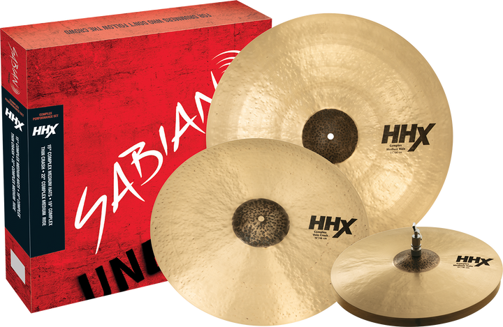 Using trickle down technology gleaned from years of developing some of the world’s top selling cymbals lines like Evolution, Legacy, and even Artisan, SABIAN introduces HHX Complex, a new line of exquisitely dark cymbals. Featuring a combination of HH and HHX hammering, raw hammered bells, and proprietary technology, HHX Complex are some of the richest, sweetest cymbals SABIAN has ever produced. The versatility to easily cross musical styles has always been a hallmark of the HHX line, and the HHX Complex Promotional Set – with 15” Complex Medium Hats, 19” Complex Thin Crash and a 22” Complex Medium Ride – is no exception.