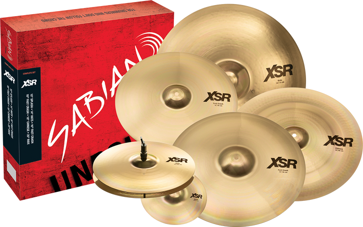 Crafted from pure SABIAN B20 Bronze using trickle-down technology from award-winning Evolution and X-Plosion cymbals, XSR delivers unpresendented sound and performance at a price designed to fit your cymbal budget. The SABIAN XSR Complete Set includes the fast, bright 10" XSR Splash; highly-responsive 14" XSR Hats; highly-effective 16" and 18" XSR Fast Crashes; a raw, nasty 18" XSR Chinese; and the tasty 20" XSR Ride. XSR is not a budget series, but rather a line of smartly-priced cymbals that would not be out of place on any drum kit, on any stage.