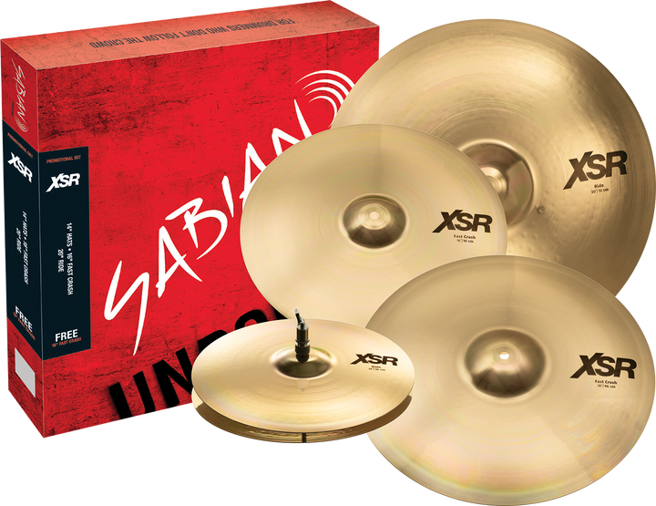 The Sabian XSR Performance Set (XSR5005GB) gives you a complete, ready-to-play cymbal lineup: 14" XSR Hi-Hats, 16" XSR Fast Crash, 20" XSR Ride, plus a FREE 18" XSR Fast Crash. The cymbals are sonically matched at the Sabian Vault for consistent blend and balance straight out of the box. Crafted from B20 bronze with a brilliant finish for a bright, focused response that works across rock, pop, worship, and education.