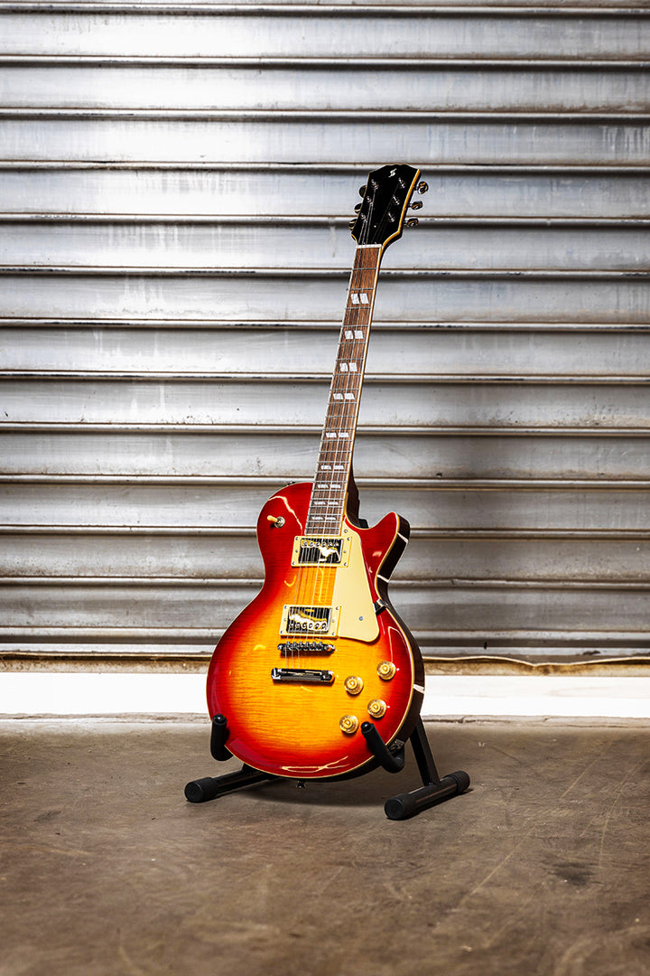 Stagg Deluxe Single-Cut – Mahogany/AAA Flamed Maple Top (Dark Cherry Burst) (SKU: TBD)