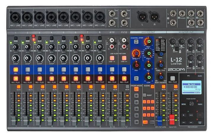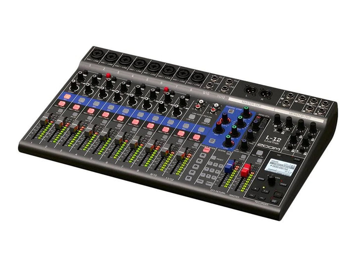 Zoom LiveTrak L-12 Digital Mixer/Recorder (12-In Mixer, 14-Track SD, 5 Custom Monitors) – USB 14×4 Audio Interface